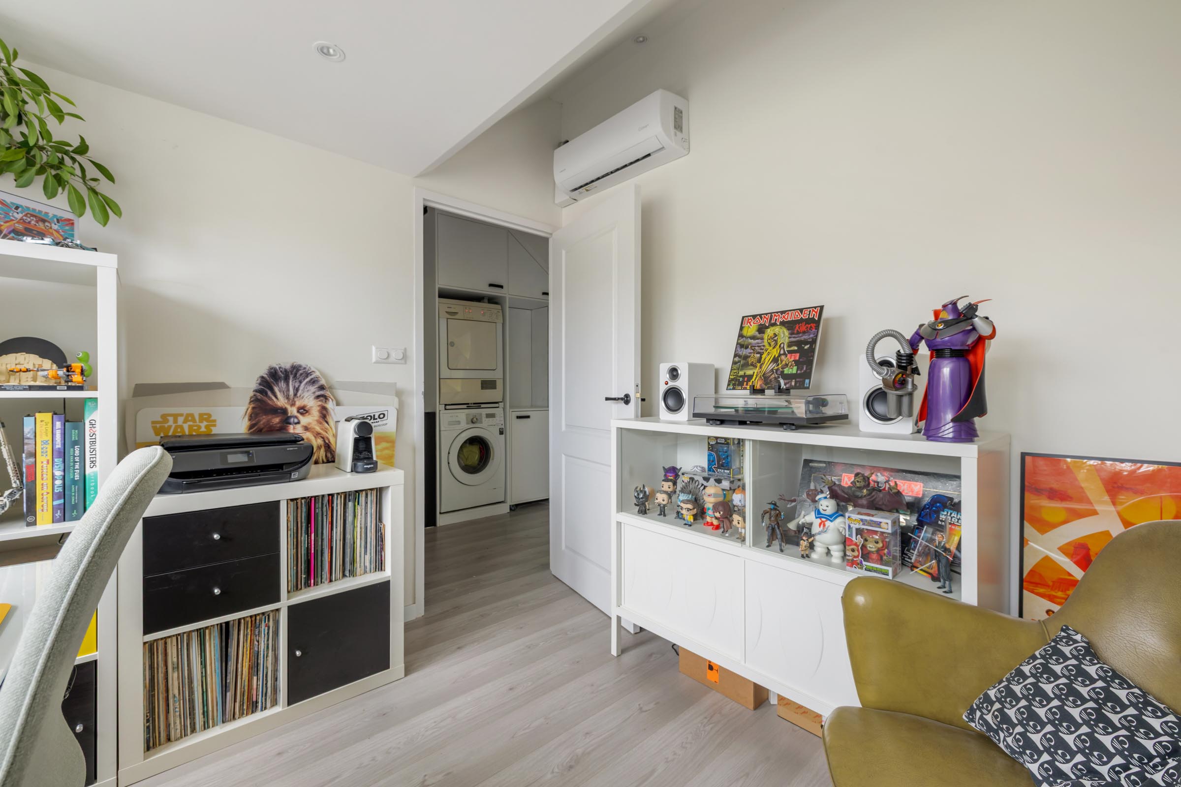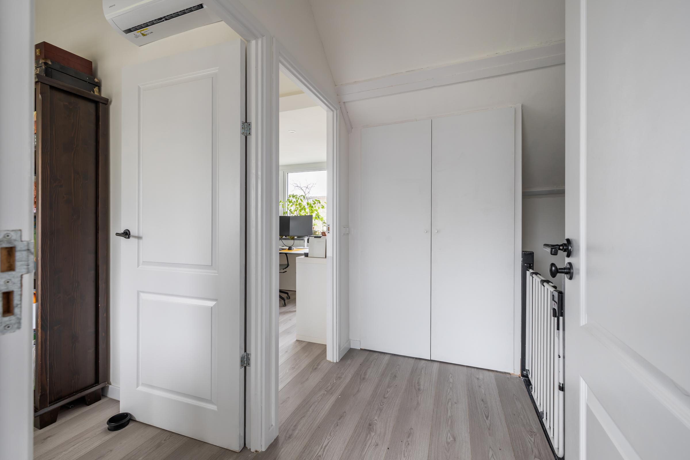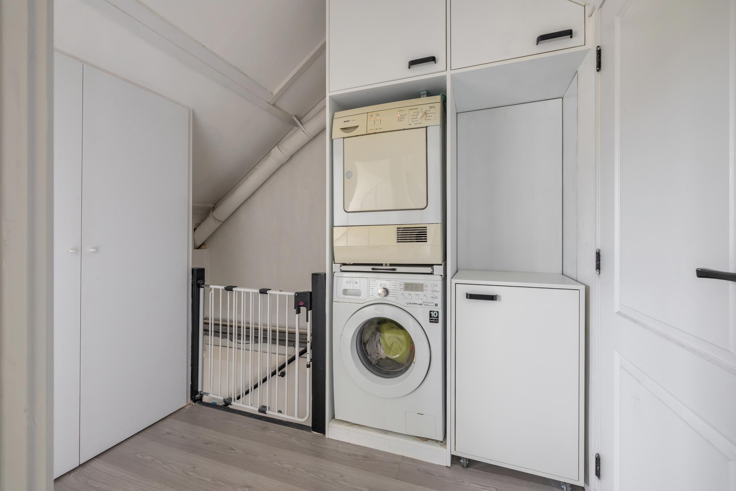 Op de overloop bevinden zich de wasmachineaansluiting, de cv-opstelling (netjes weggewerkt) en extra bergruimte.