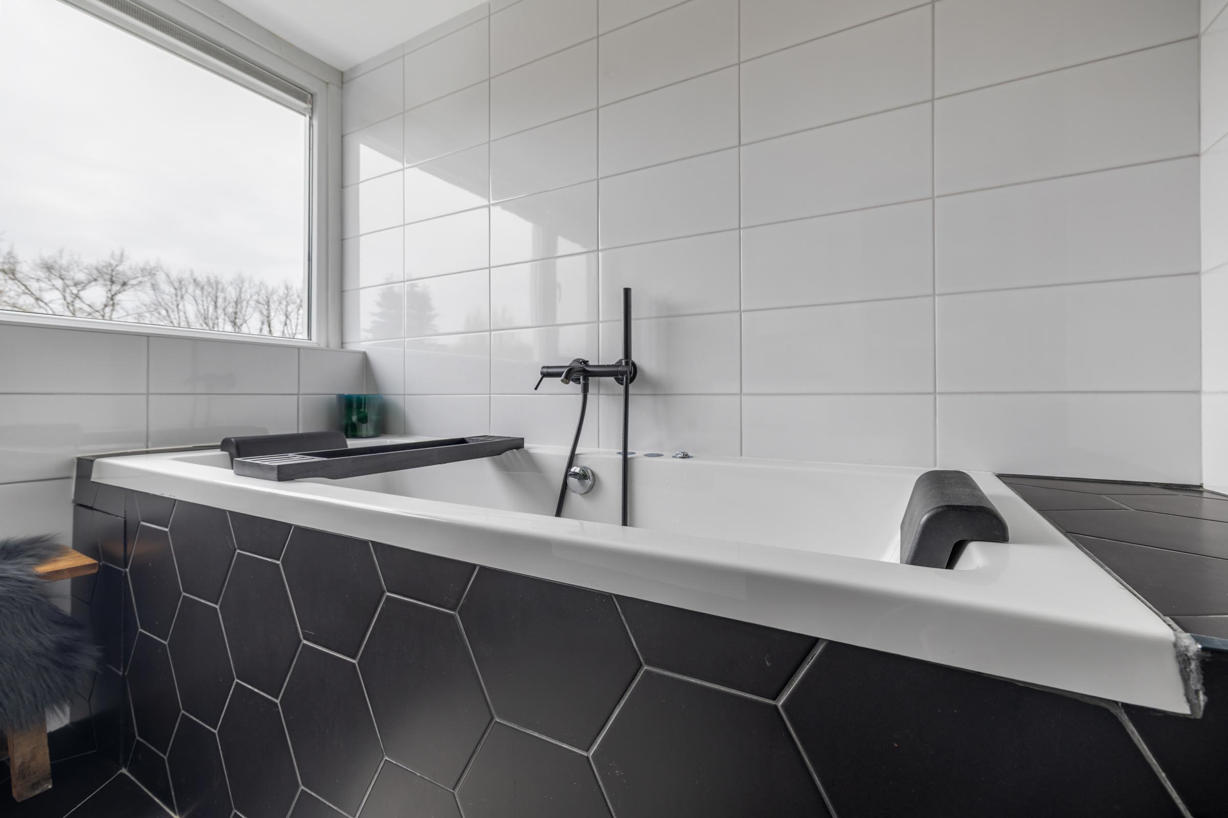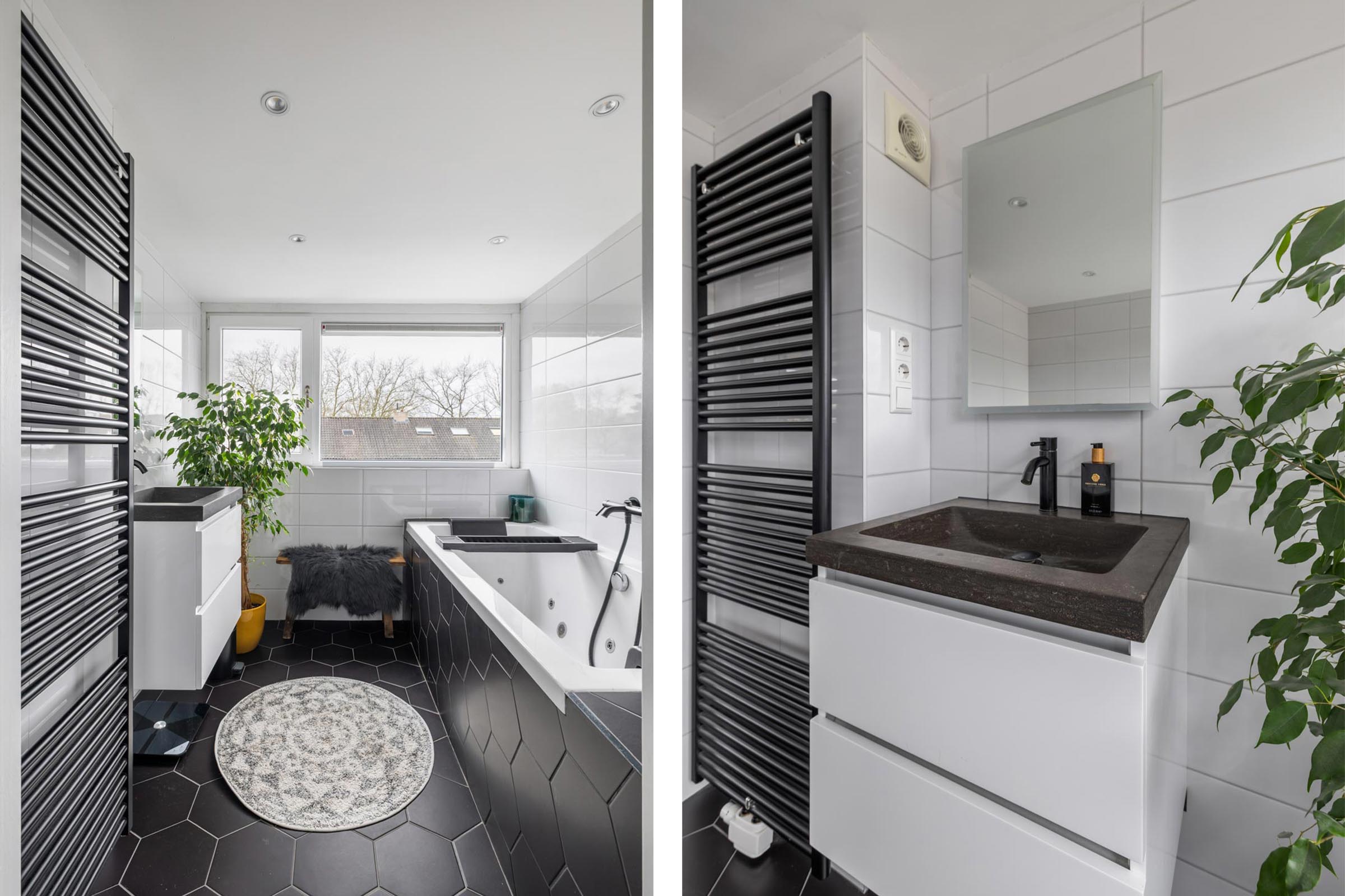Daarnaast is er een tweede badkamer met ligbad/jacuzzi en wastafelmeubel — ideaal voor grotere gezinnen of gasten.