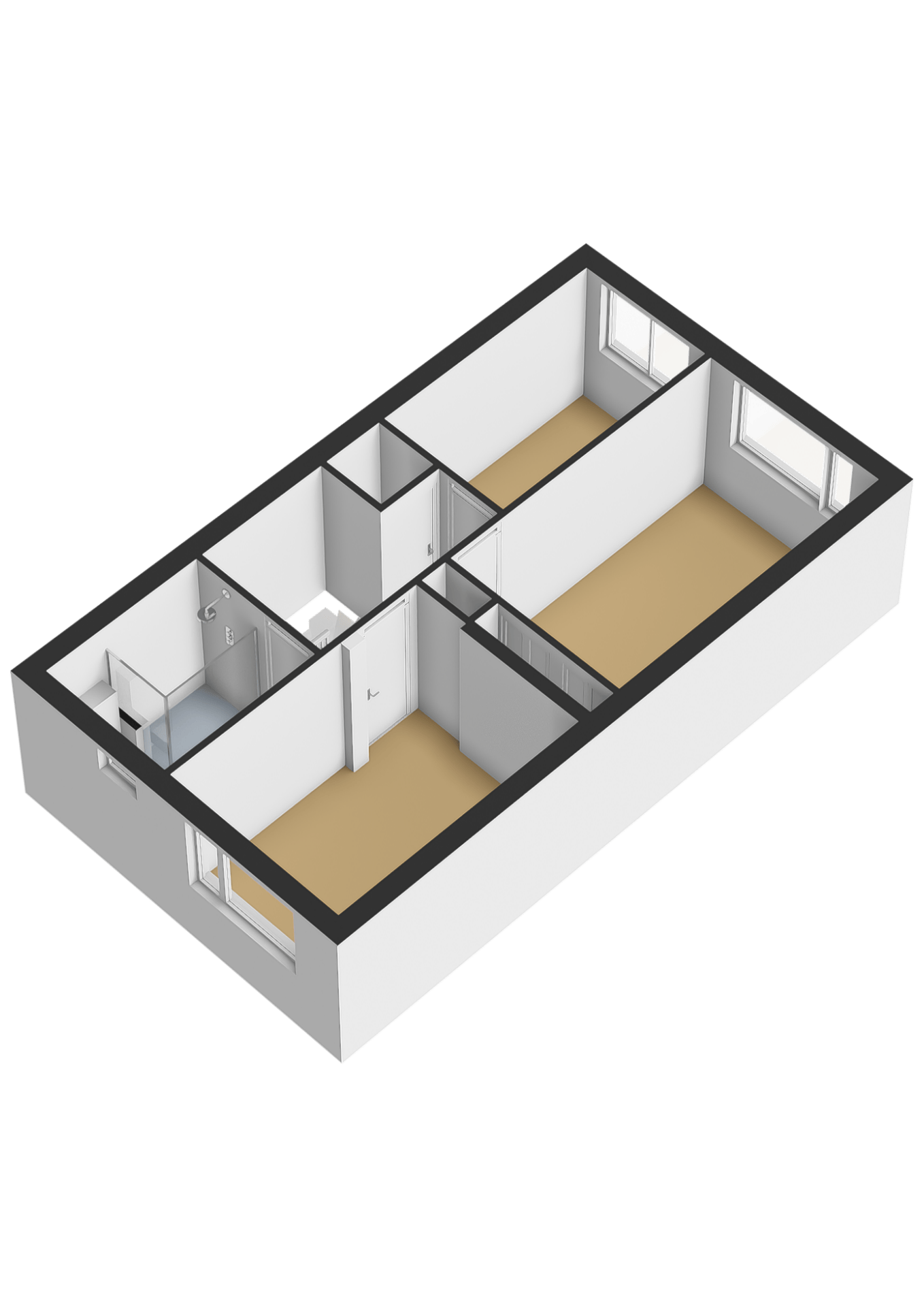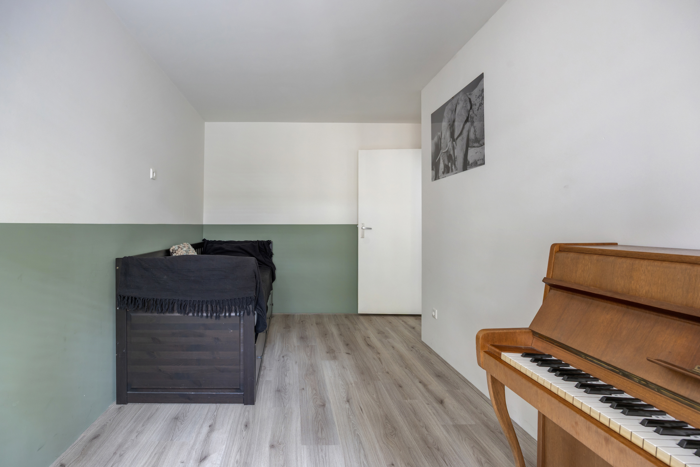 Slaapkamer III (ca. 3.87 x 2.78 m) – aan de voorzijde, met laminaatvloer en granol wandafwerking.
