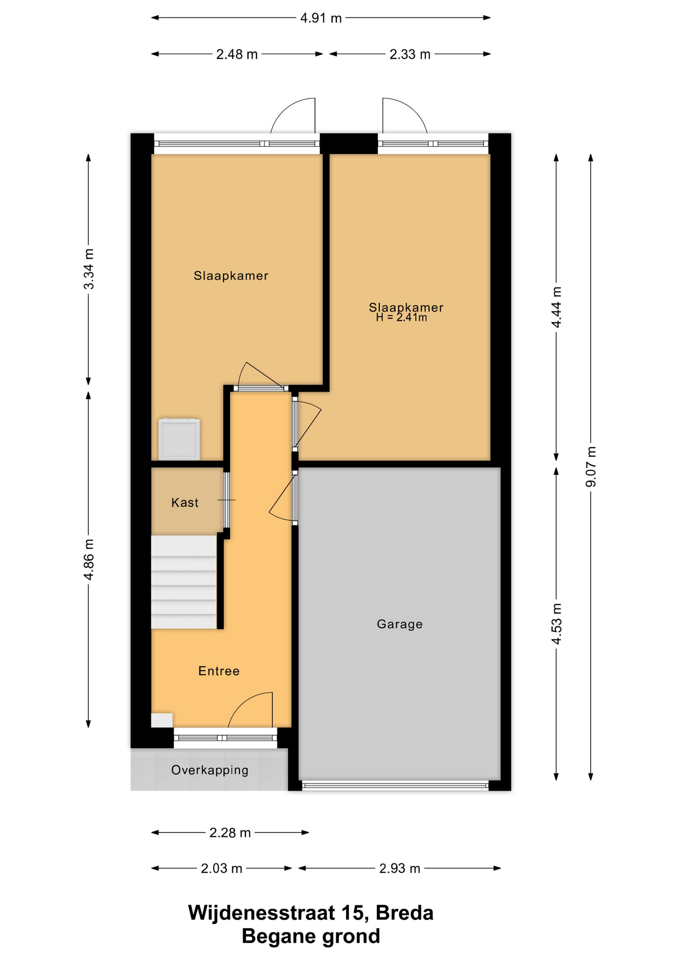 Via de dubbele oprit bereik je de ruime entree/hal met trapopgang naar de eerste verdieping, vernieuwde meterkast (6 groepen + 2 aardlekschakelaars) en toegang tot de garage en twee multifunctionele (slaap-/werk)kamers.