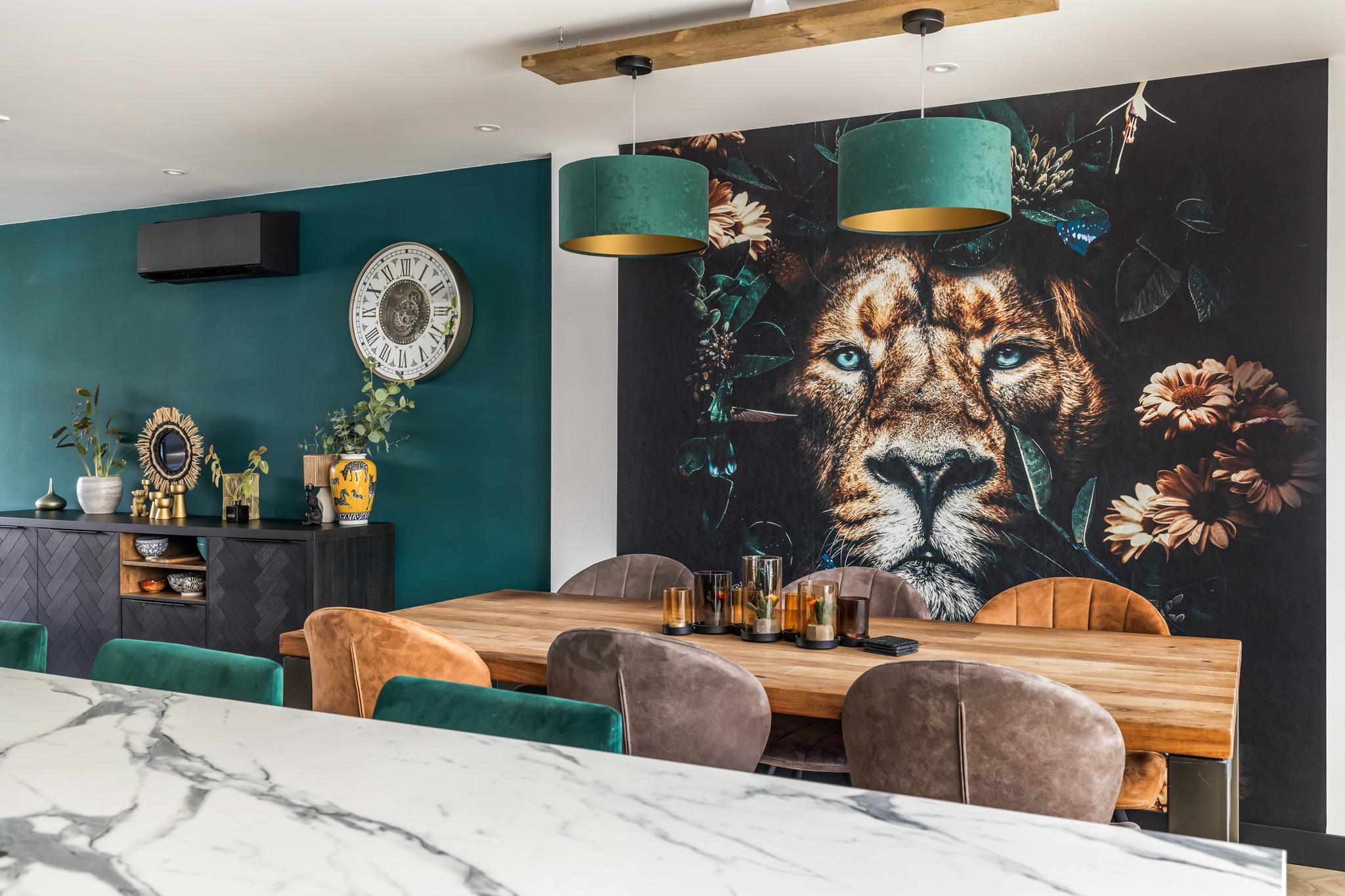 Vanuit de hal toegang tot de prachtige, uitgebouwde woonkamer met luxe keuken voorzien van eiland.