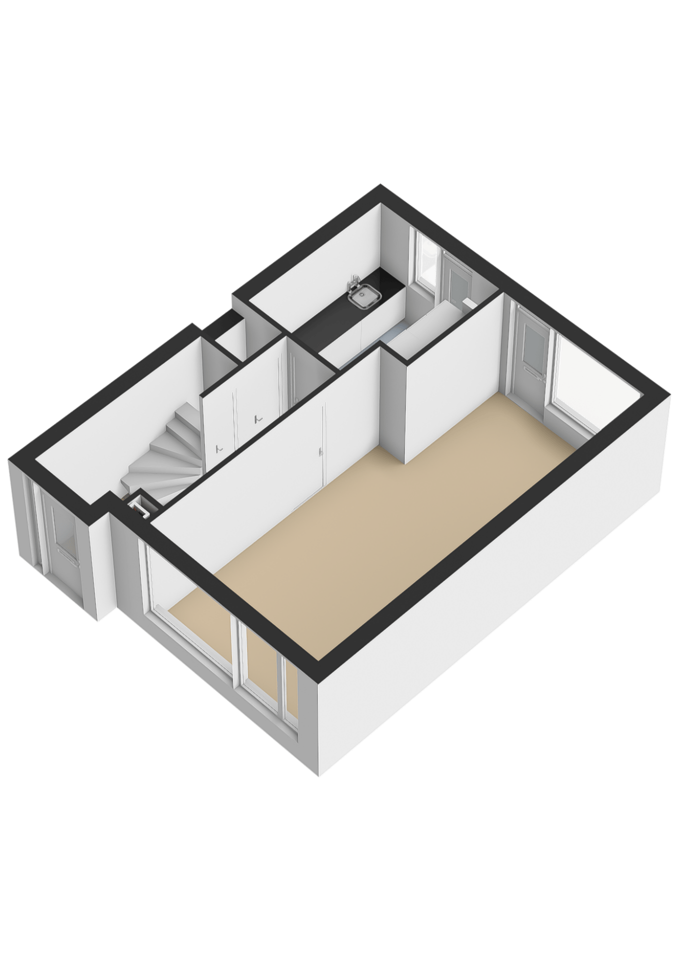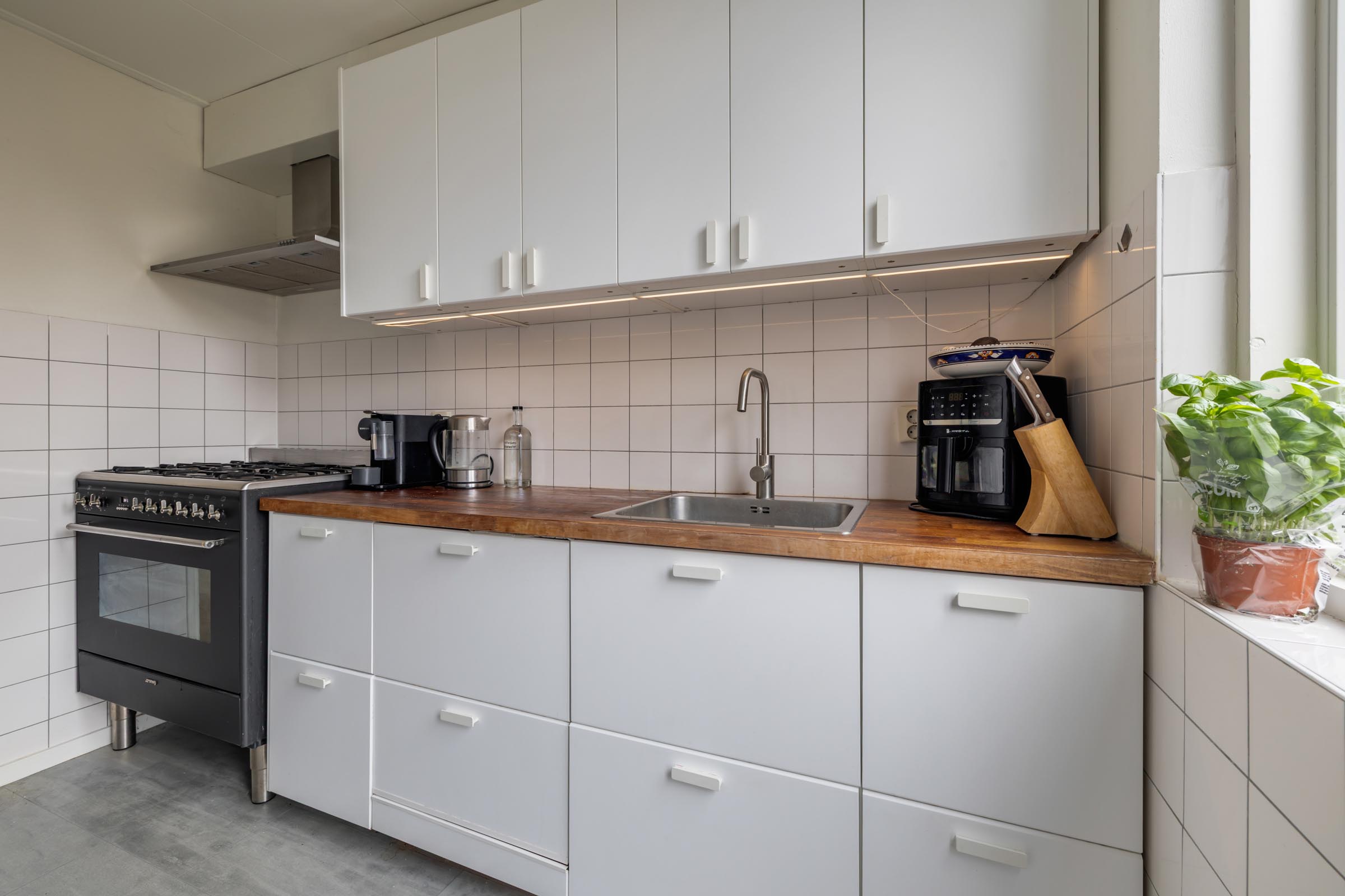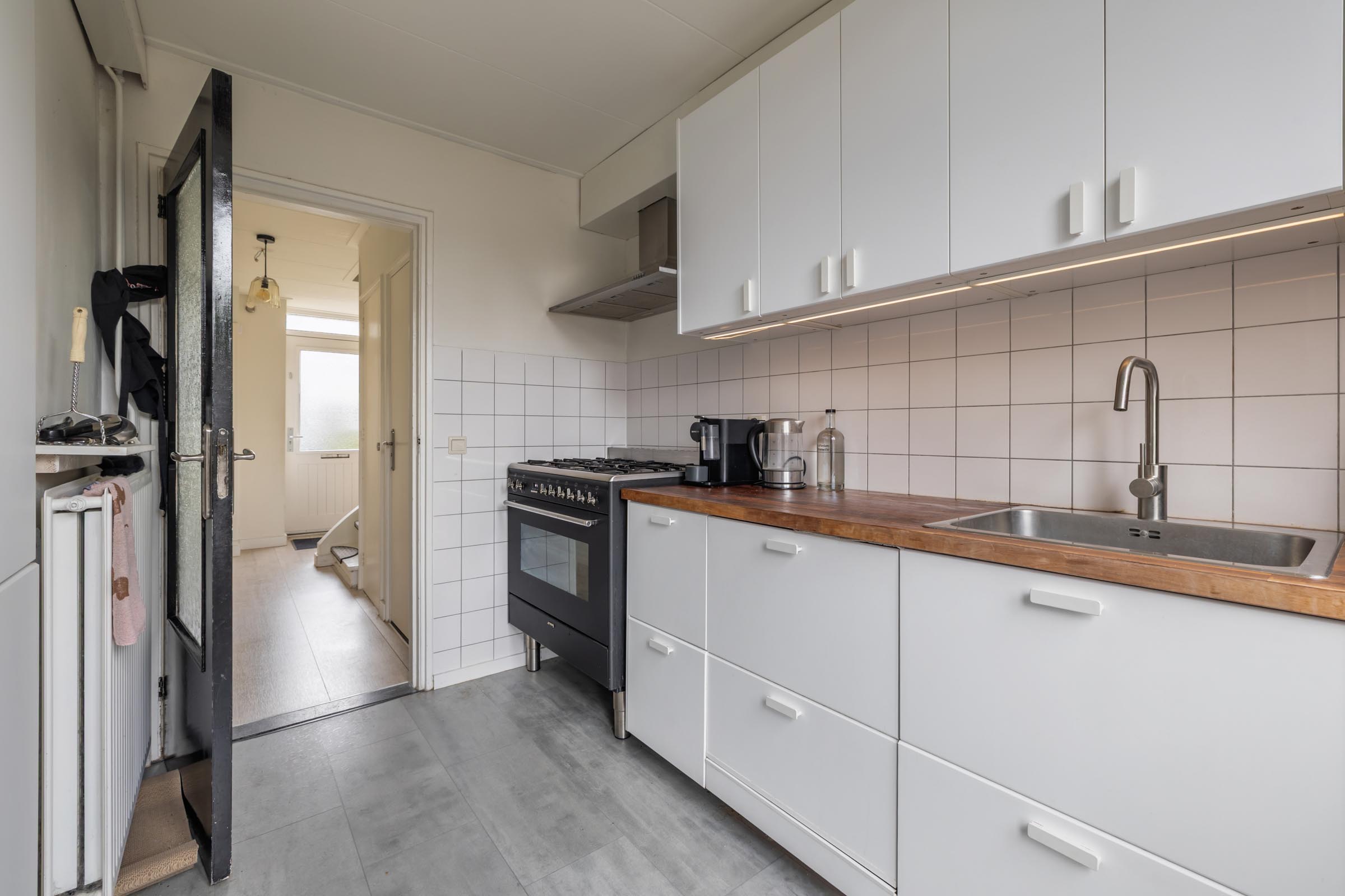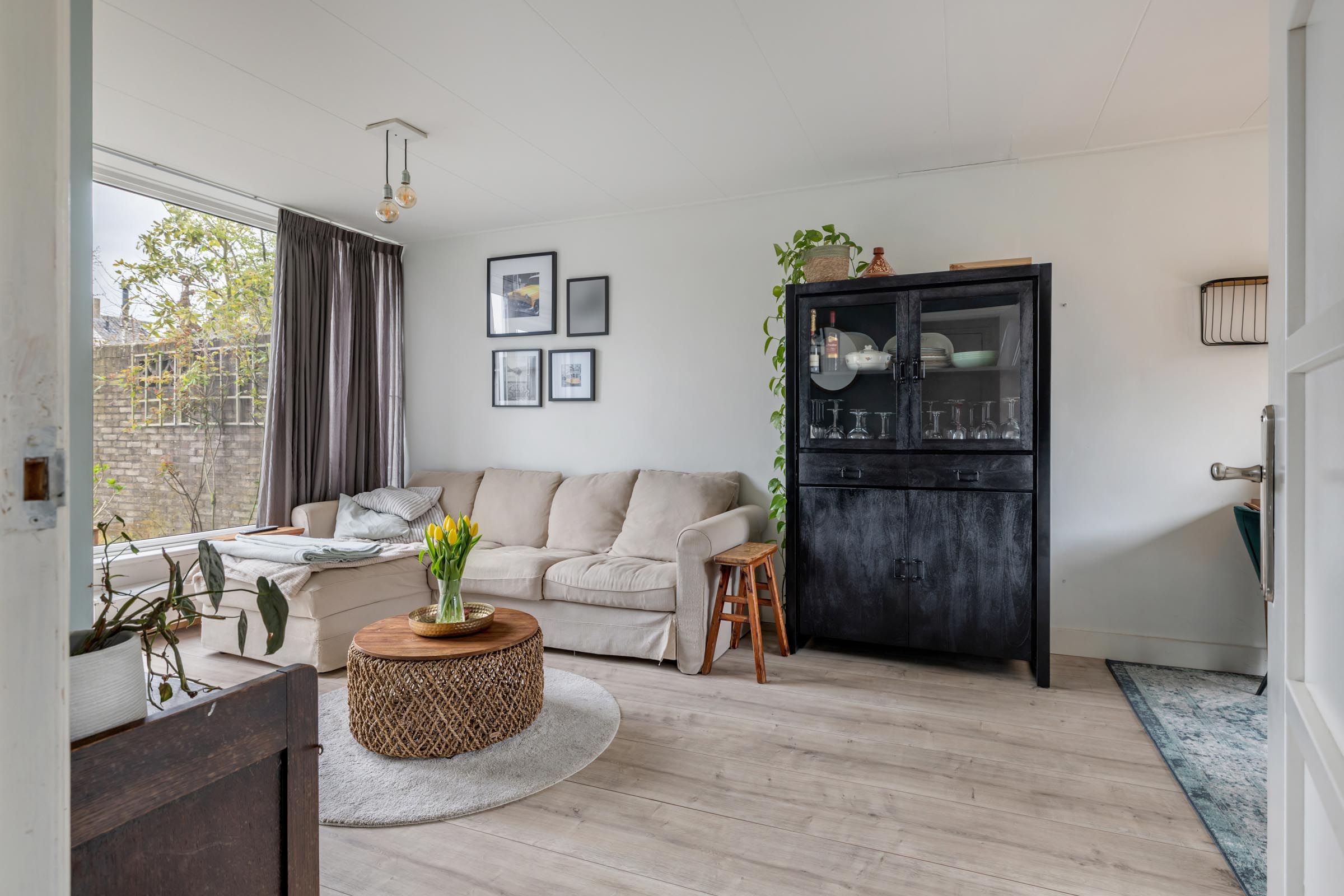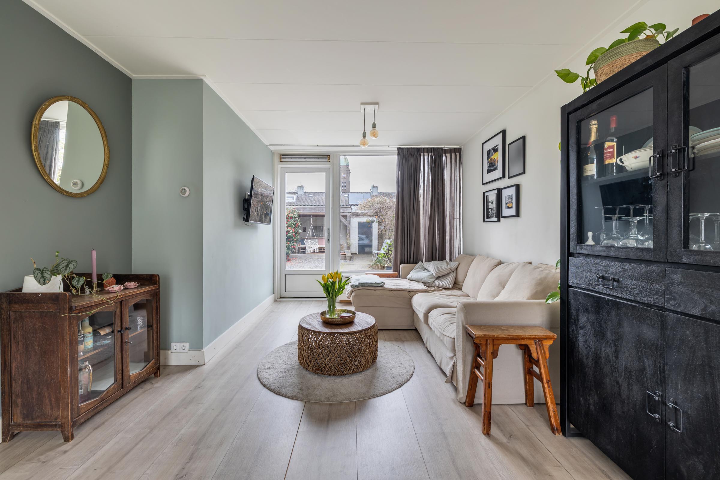 De lichte woonkamer voelt direct prettig aan dankzij de grote raampartijen en is afgewerkt met een laminaatvloer en gestuukte wanden. Het raam aan de voorzijde van de woonkamer is voorzien van een elektrisch screen. Via de loopdeur stap je zo de achtertuin in — ideaal voor binnen-buiten leven.