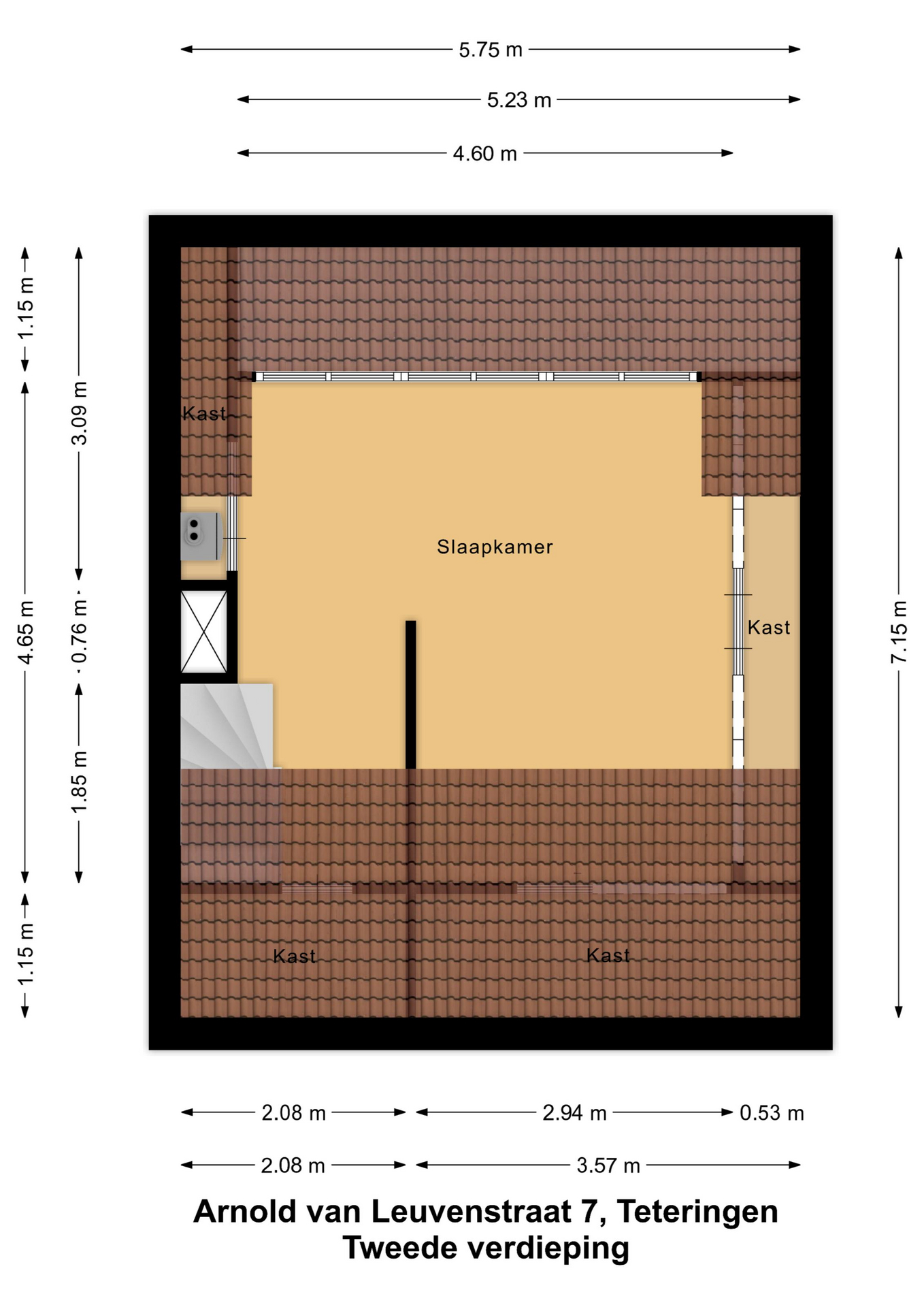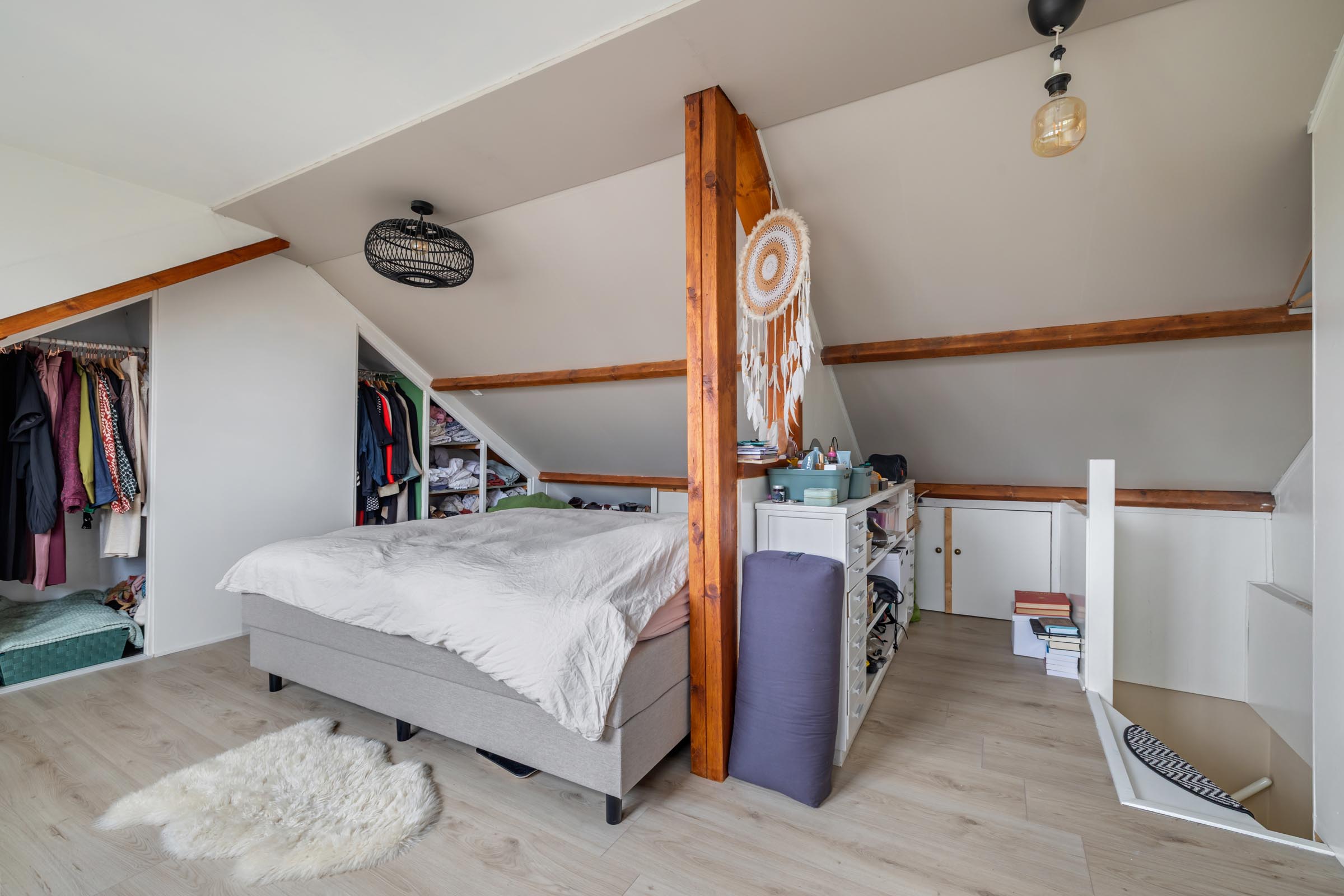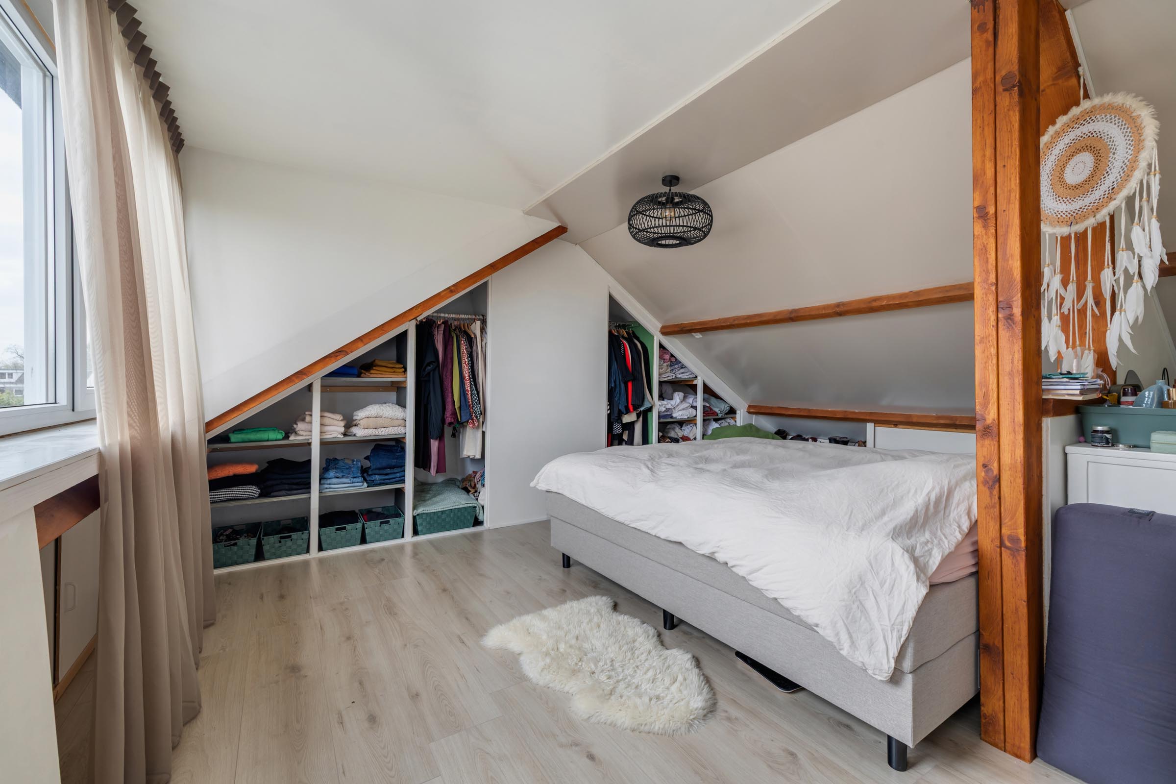 Hier vind je de verrassend ruime vierde slaapkamer. Dankzij de brede dakkapel (2021) is dit een volwaardige, lichte verdieping. Daarnaast is er extra bergruimte achter de knieschotten en kastruimte aanwezig. Ook de CV-installatie (Intergas, 2013) bevindt zich hier.