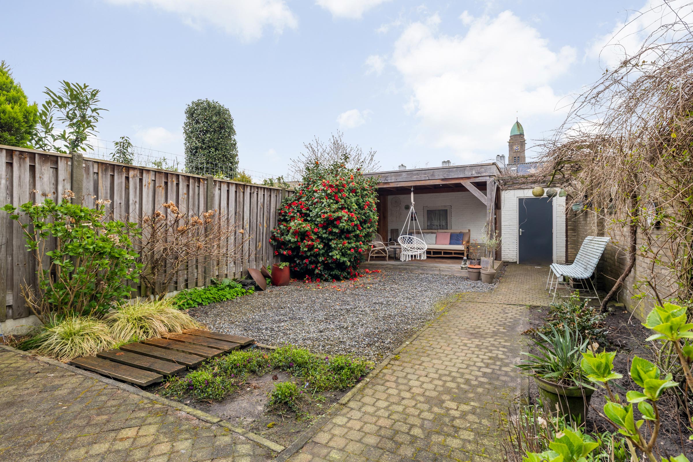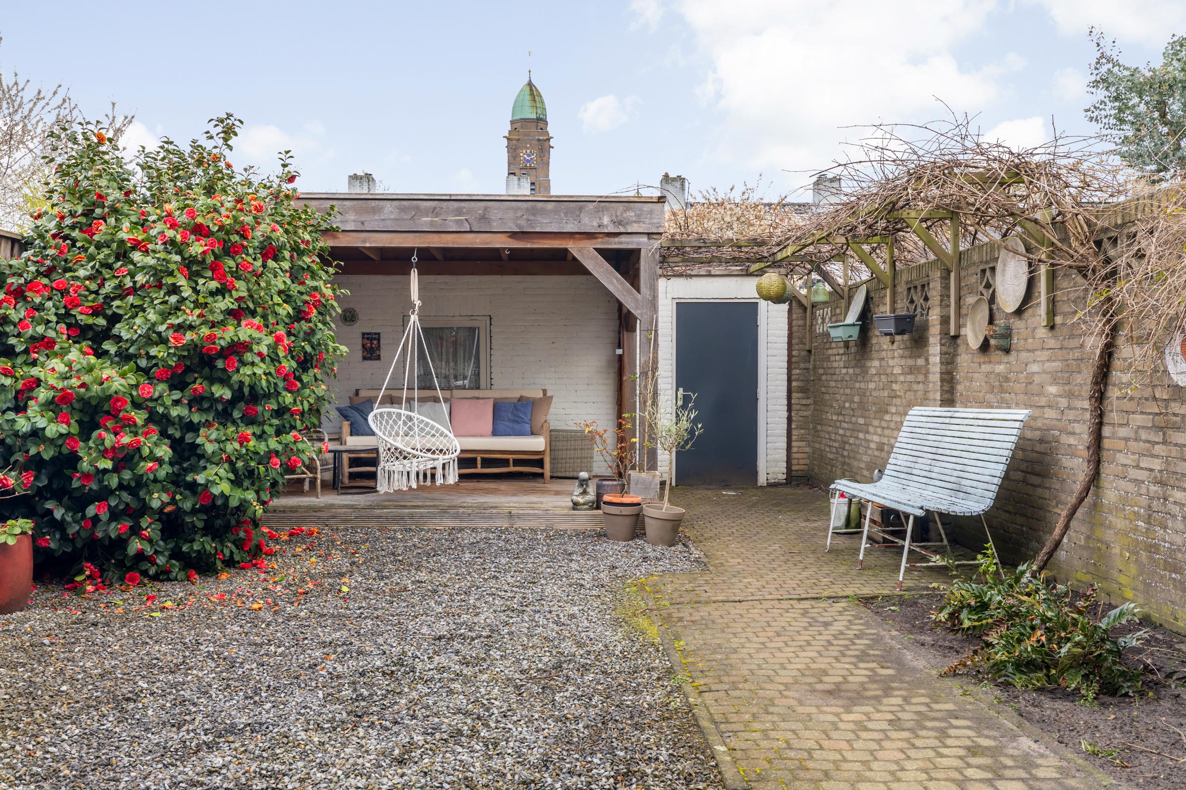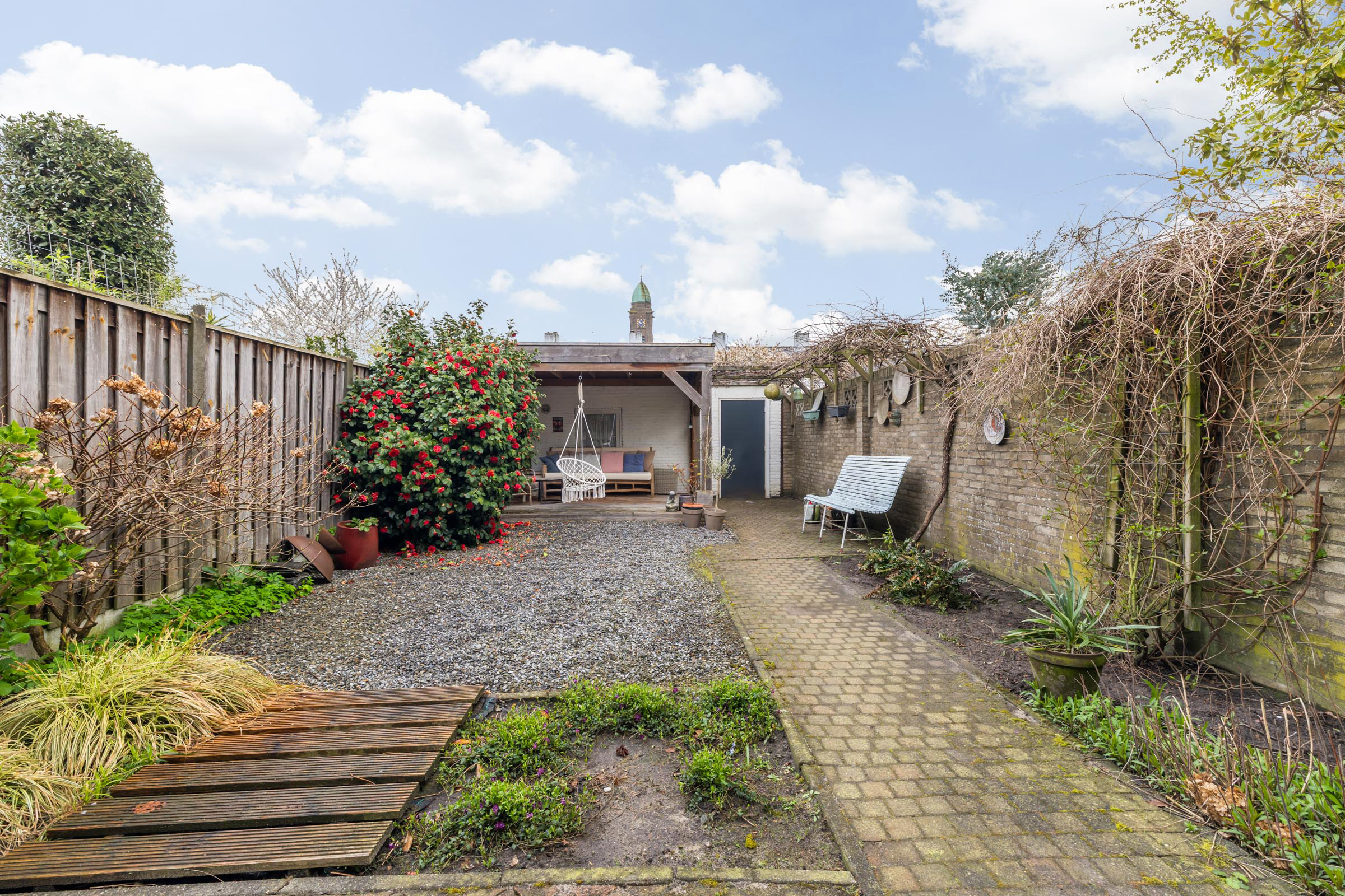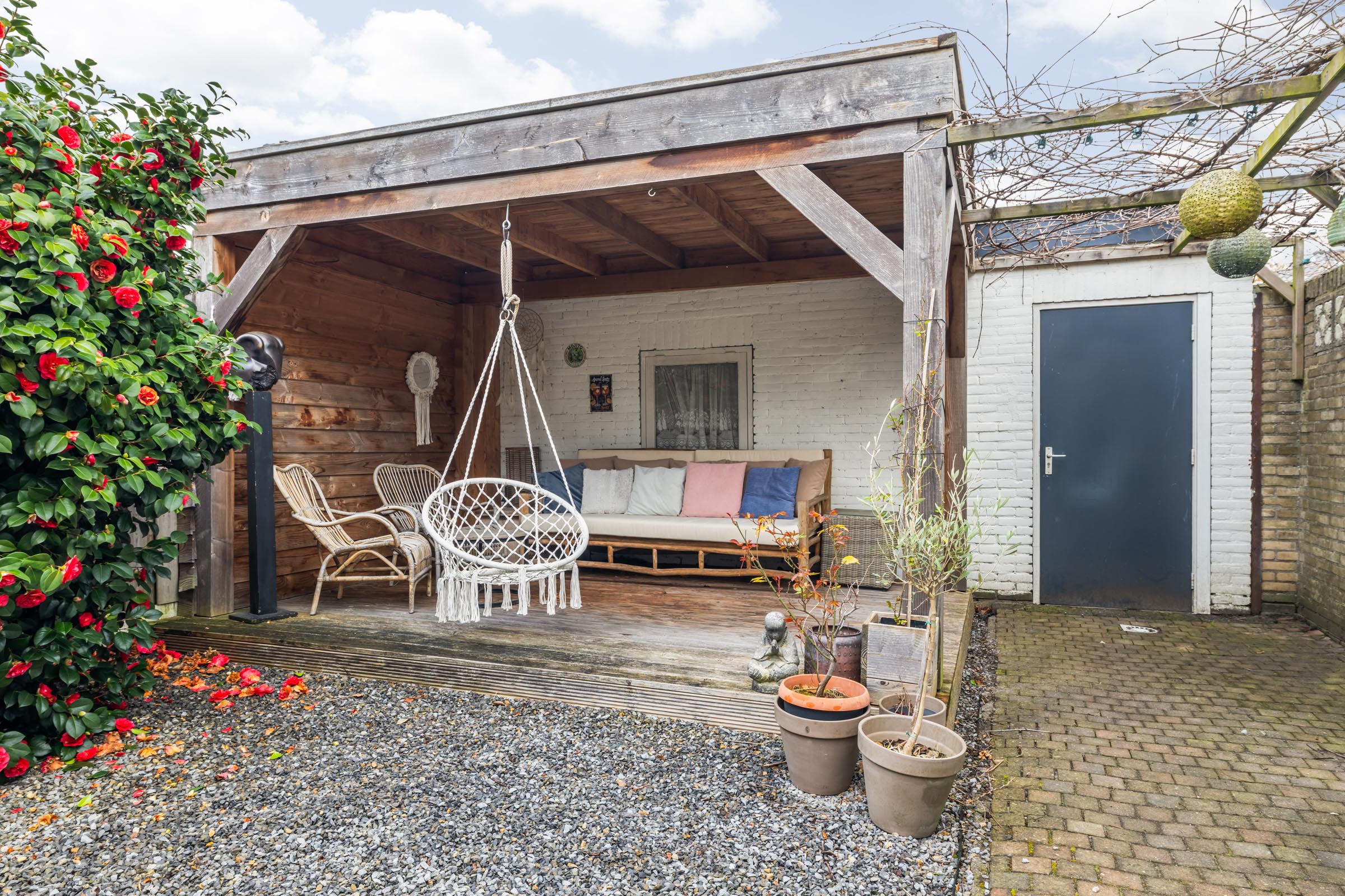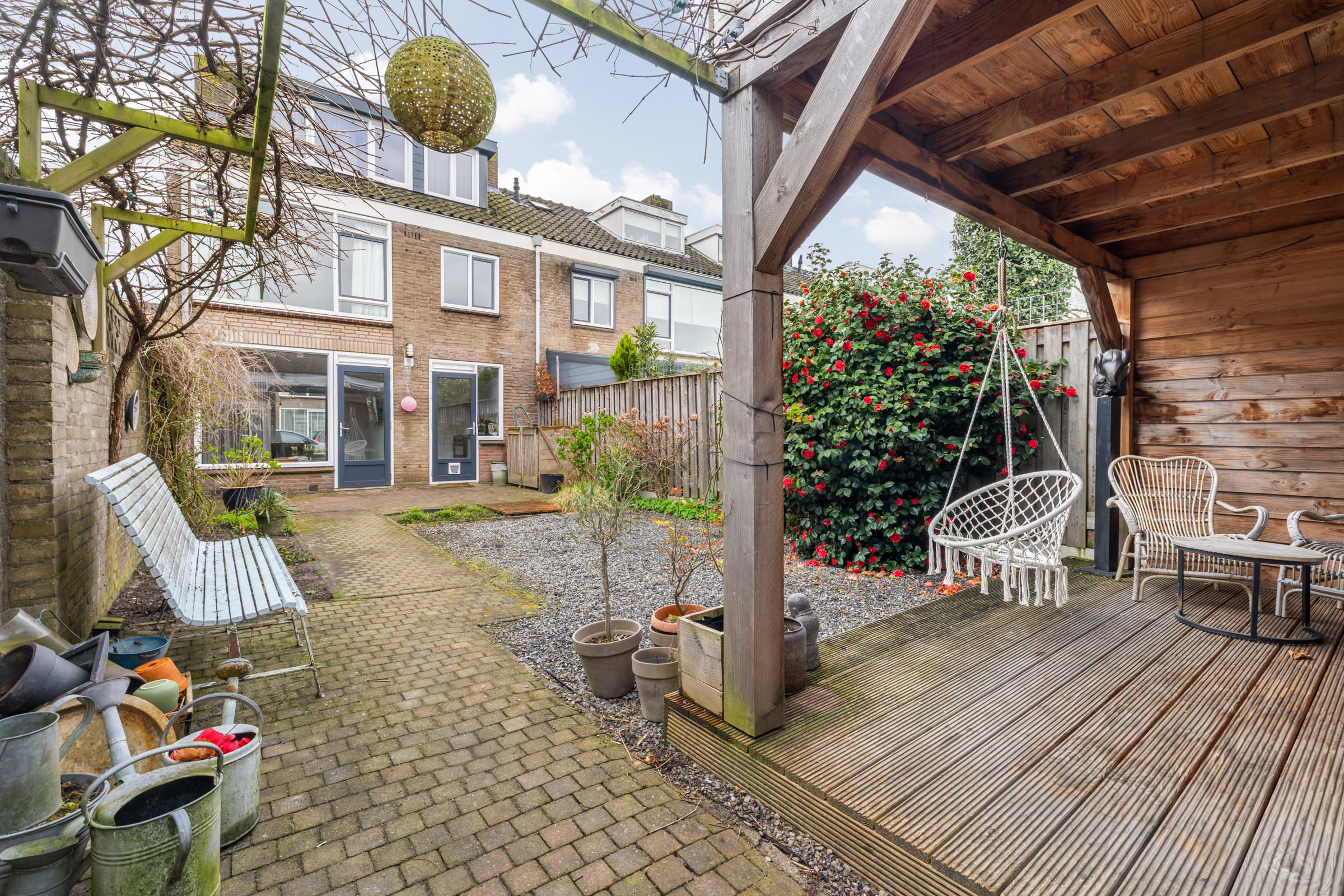 De circa 18 meter diepe achtertuin (inclusief garage) is een absolute eyecatcher. Fraai aangelegd met sierbestrating, groenborders en vaste beplanting, én voorzien van een gezellige houten overkapping met vlonderterras — dé plek voor lange zomeravonden.