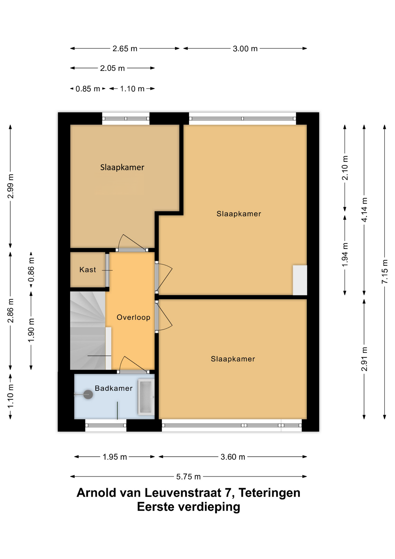 Slaapkamer II ca. 3.00×2.05m achterzijde)