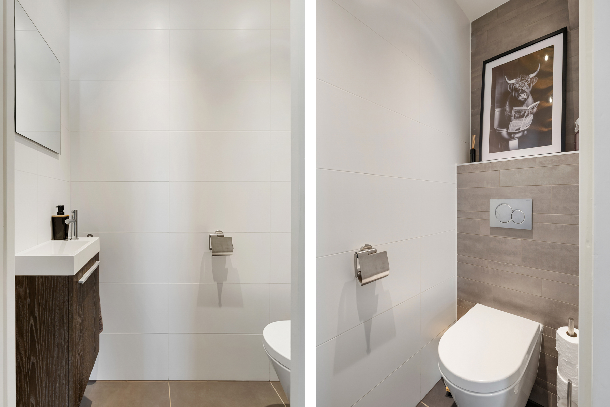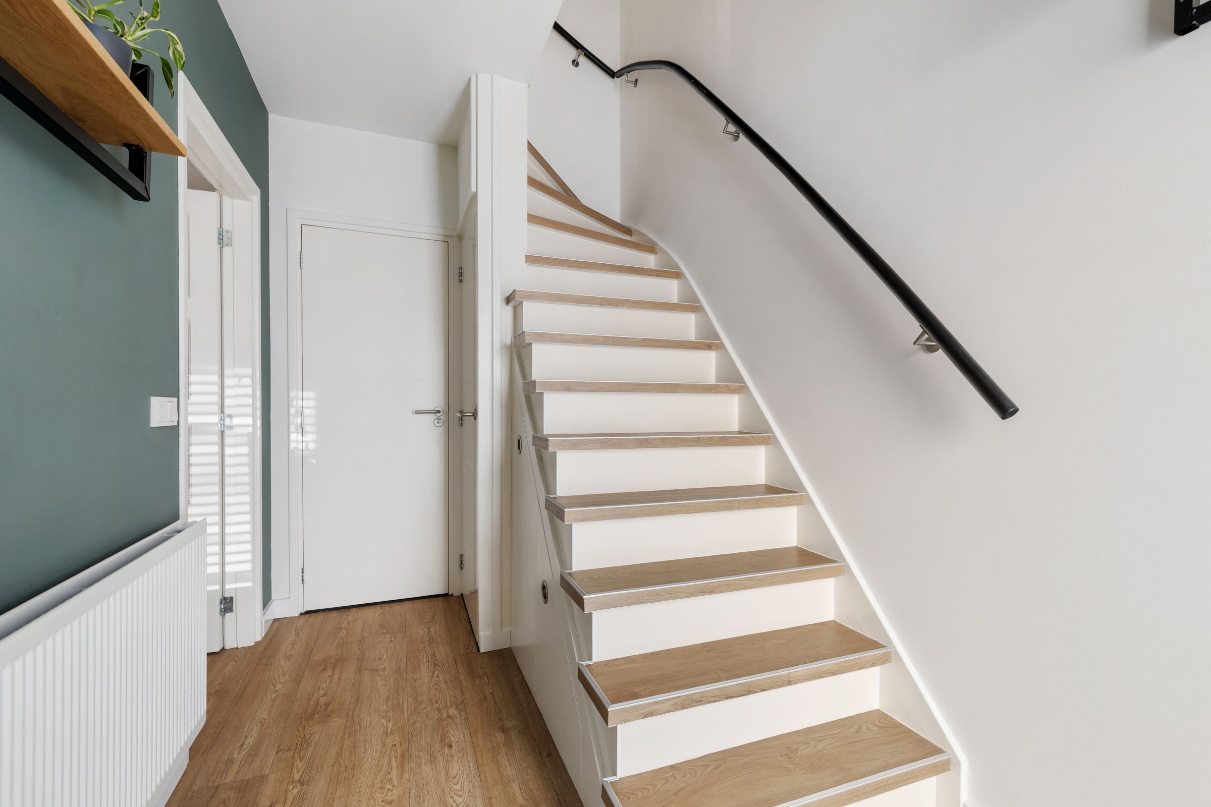 U betreedt de woning via de verzorgde entree/hal met vernieuwde meterkast (12 groepen en 3 aardlekschakelaars), trapopgang naar de eerste verdieping en praktische trap-/proviandkast. Tevens bevindt zich hier de moderne, geheel betegelde toiletruimte met zwevend toilet, fonteintje met meubel, mechanische ventilatie en strak gestuukt plafond met inbouwspots.