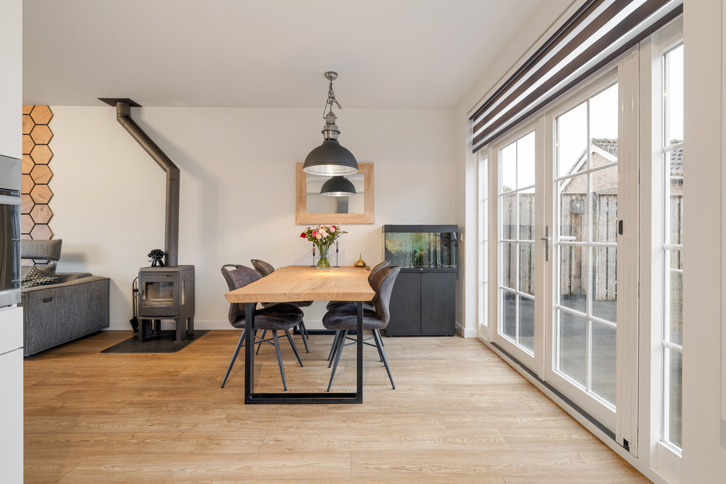De gehele woning is voorzien van dubbel glas / HR+ en HR++ beglazing;