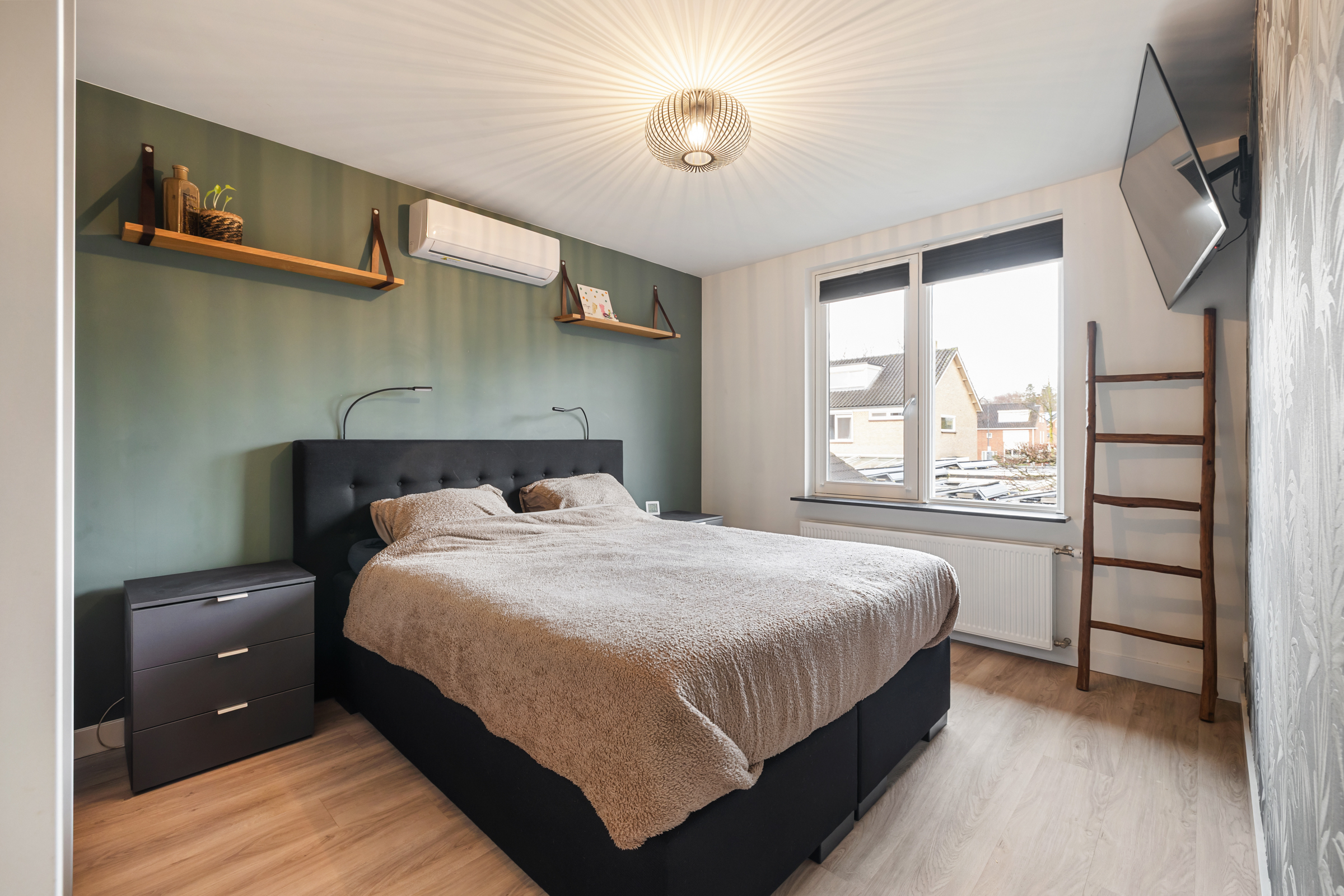 Slaapkamer II (achterzijde): idem hoogwaardige afwerking en voorzien van airconditioning.