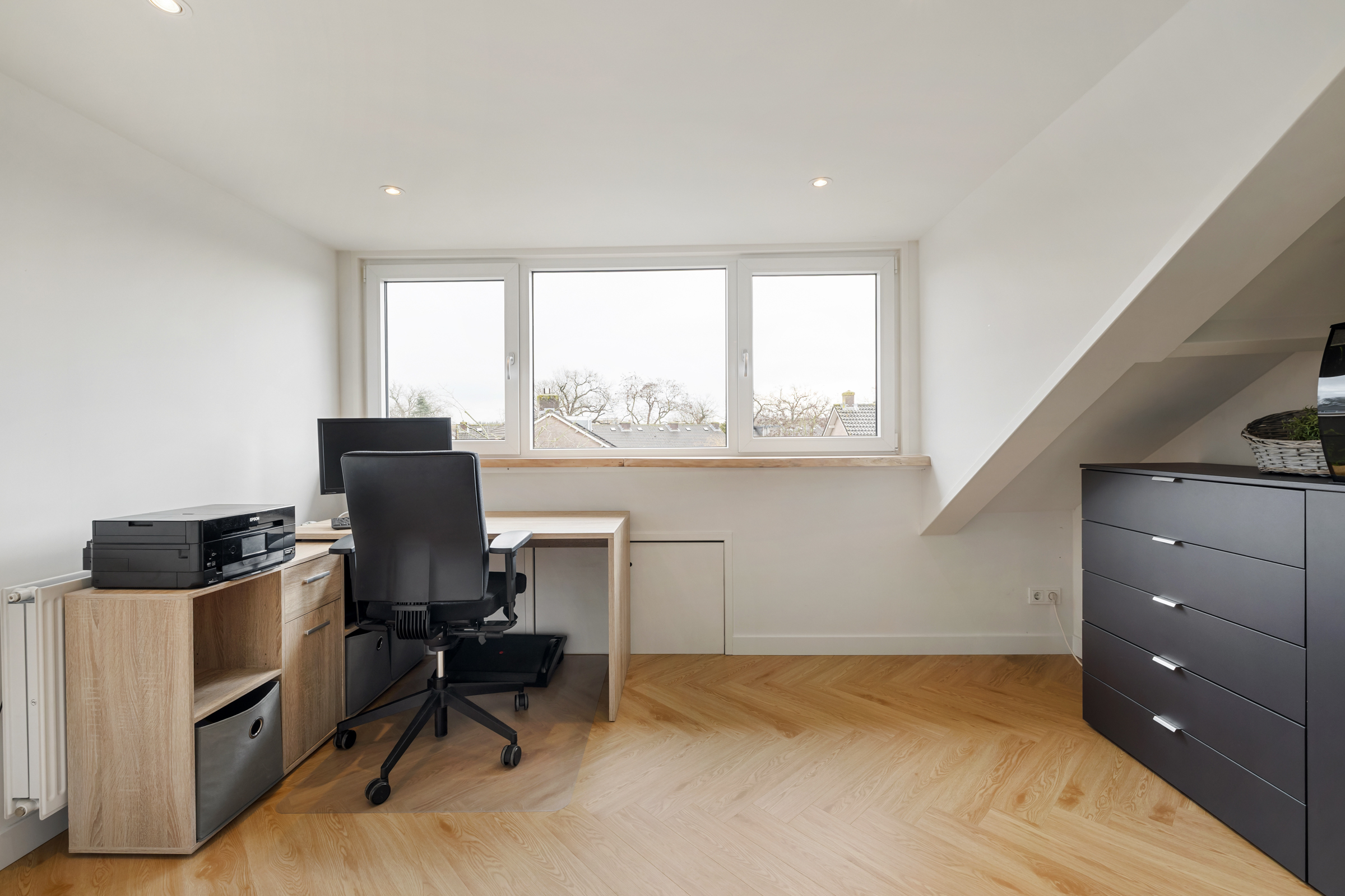 Werk-/slaapkamer V (achterzijde): voorzien van dakkapel, PVC-vloer en strak afgewerkte wanden en plafond.