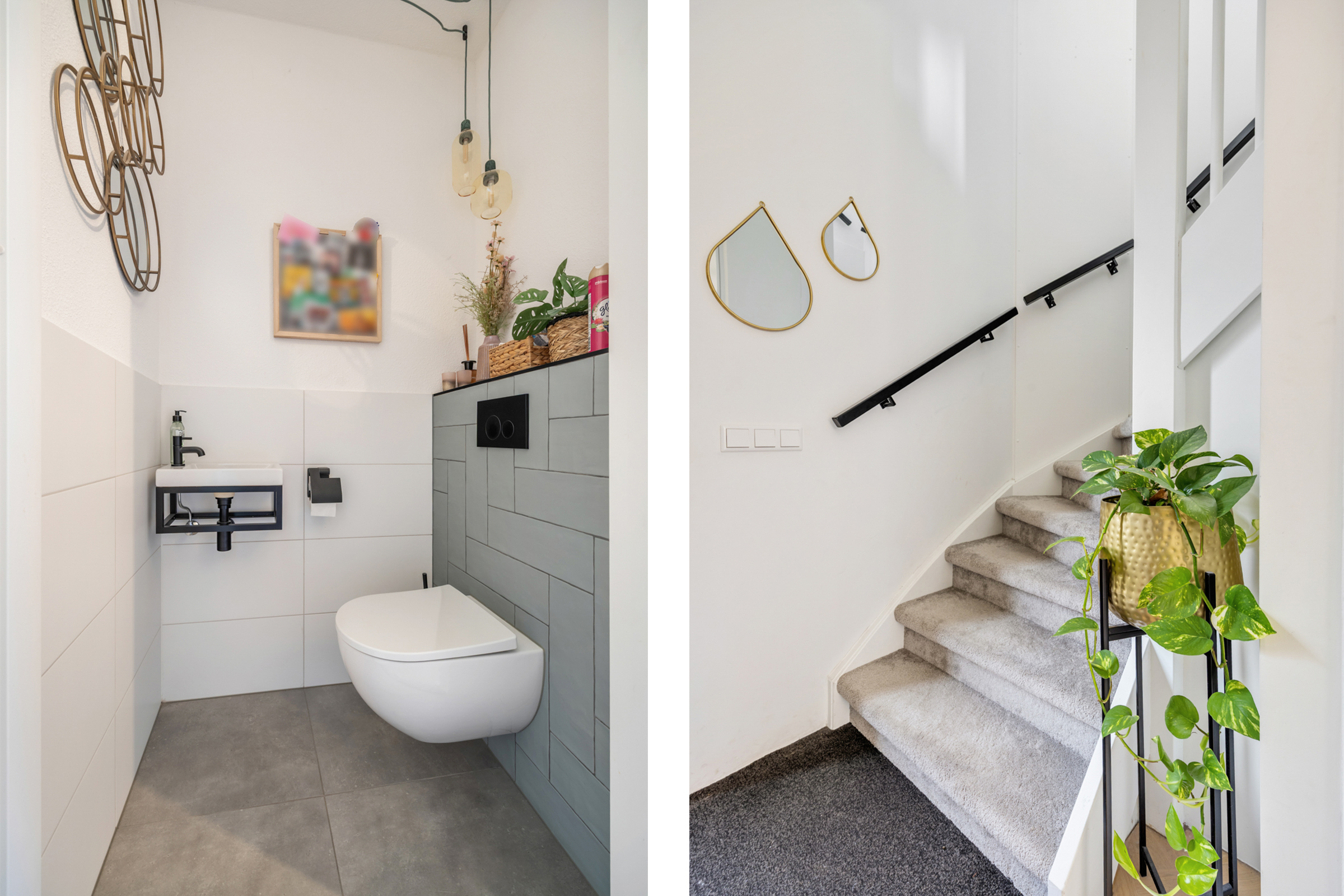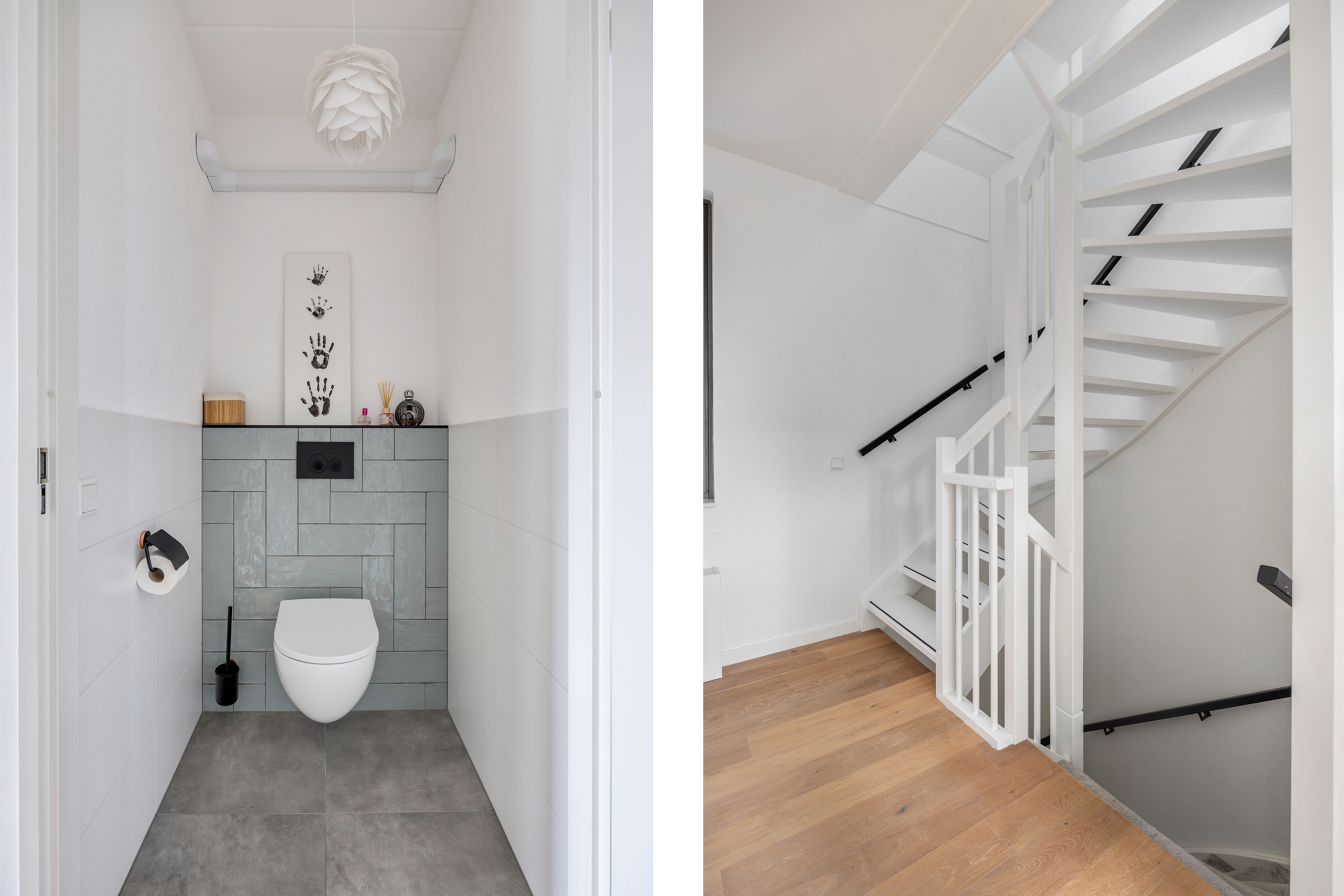 Vanuit de hal is er toegang tot het moderne toilet. De toiletruimte is modern uitgevoerd, deels betegeld en voorzien van een wandcloset en fonteintje.