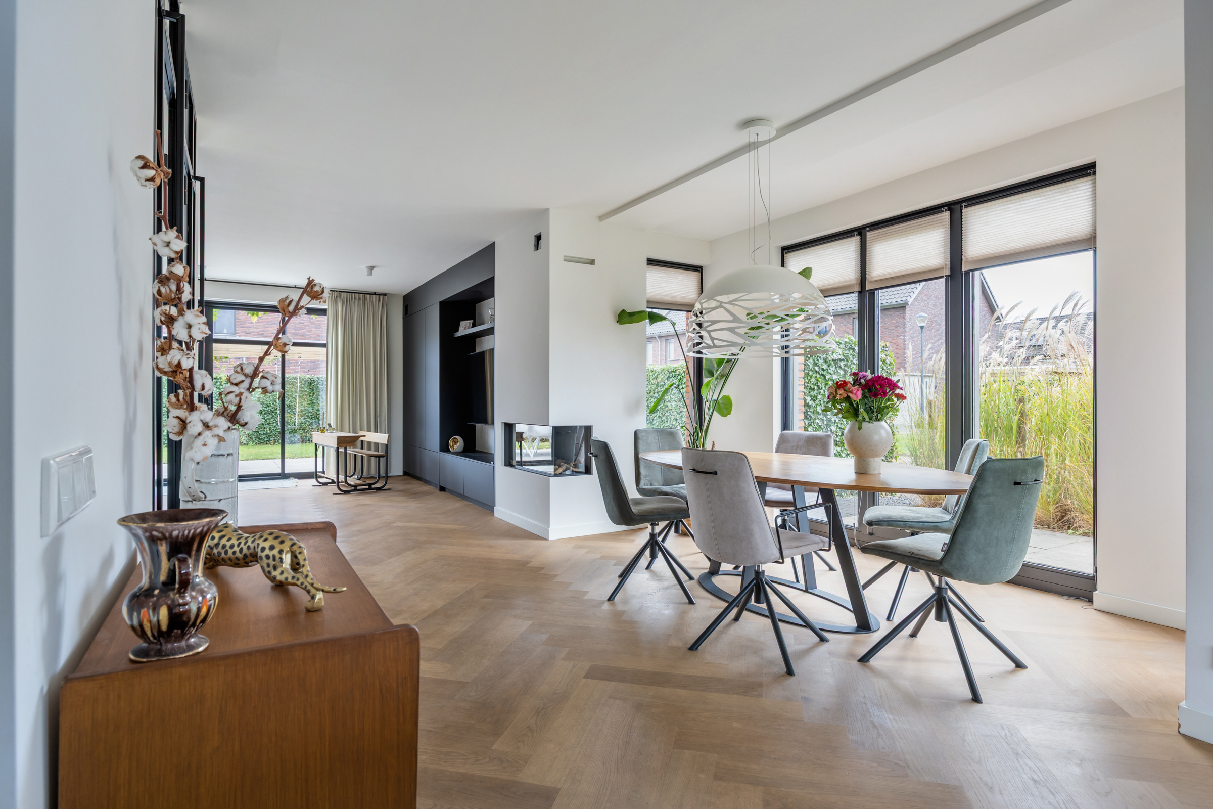 Aan de rand van het geliefde De Bouverijen in Teteringen, op een autoluwe en uitzonderlijk vrije locatie met weids uitzicht over de waterpartij van de Waterakkers, staat deze moderne villa (bouwjaar 2019, energielabel A). Hier komen rust, ruimte en design harmonieus samen. De villa is gasloos, energiezuinig en volledig instapklaar – met een maatwerk interieur van Stefan Martens Interieurbouw dat tot in het kleinste detail is doordacht.