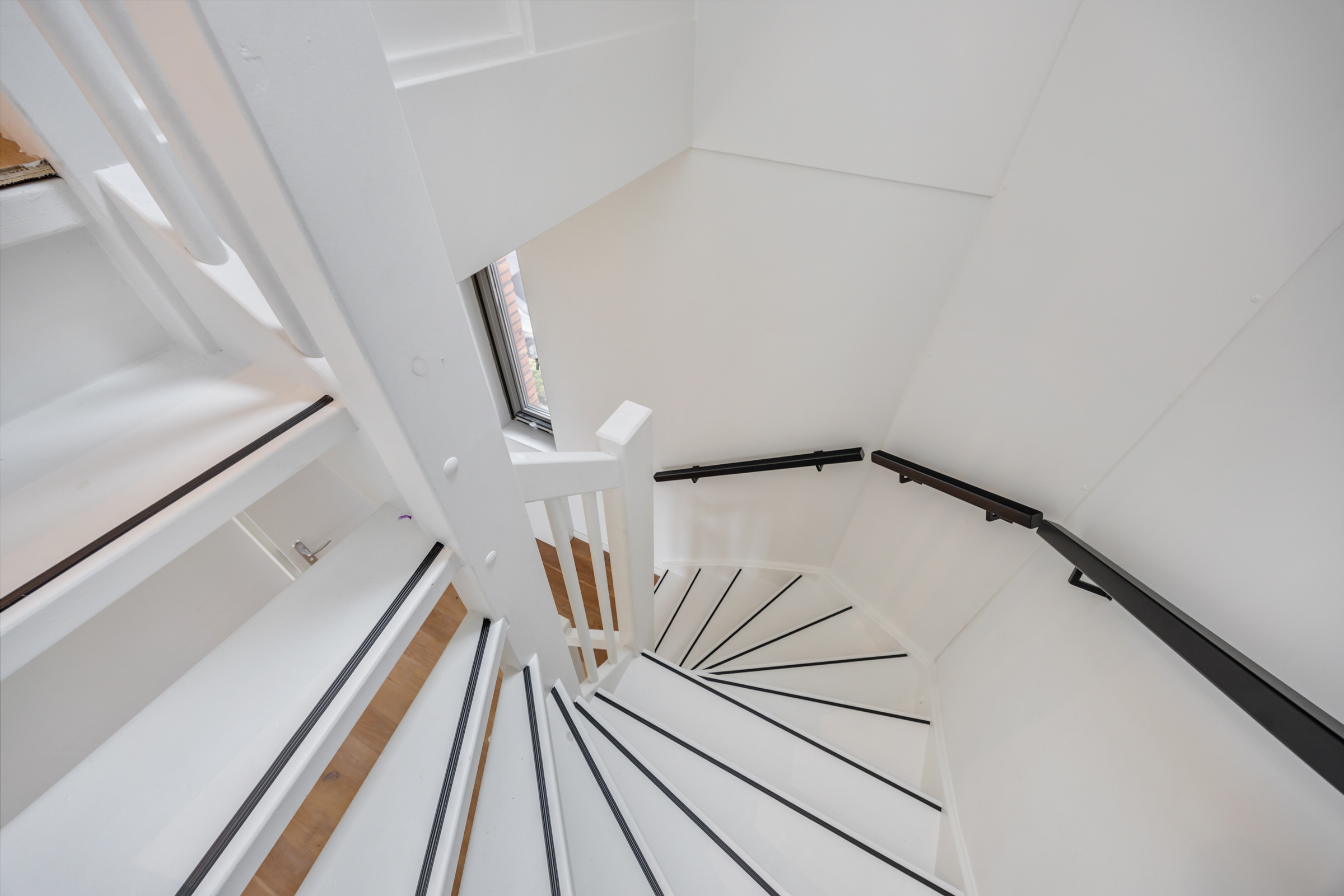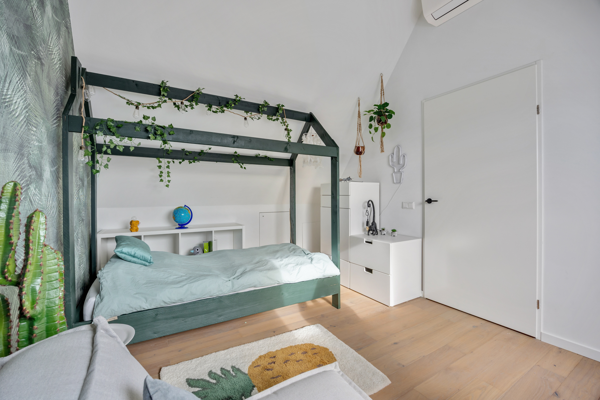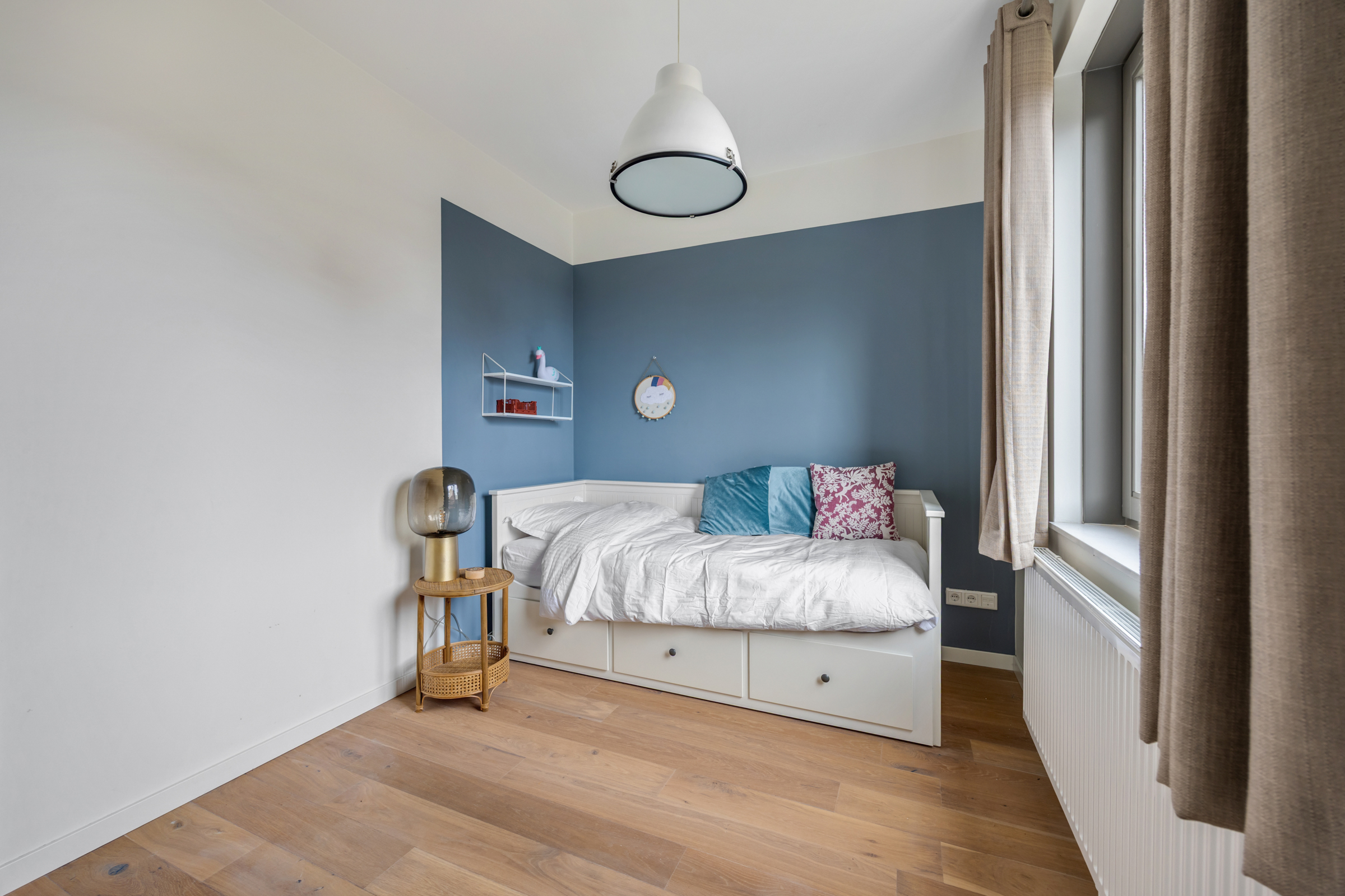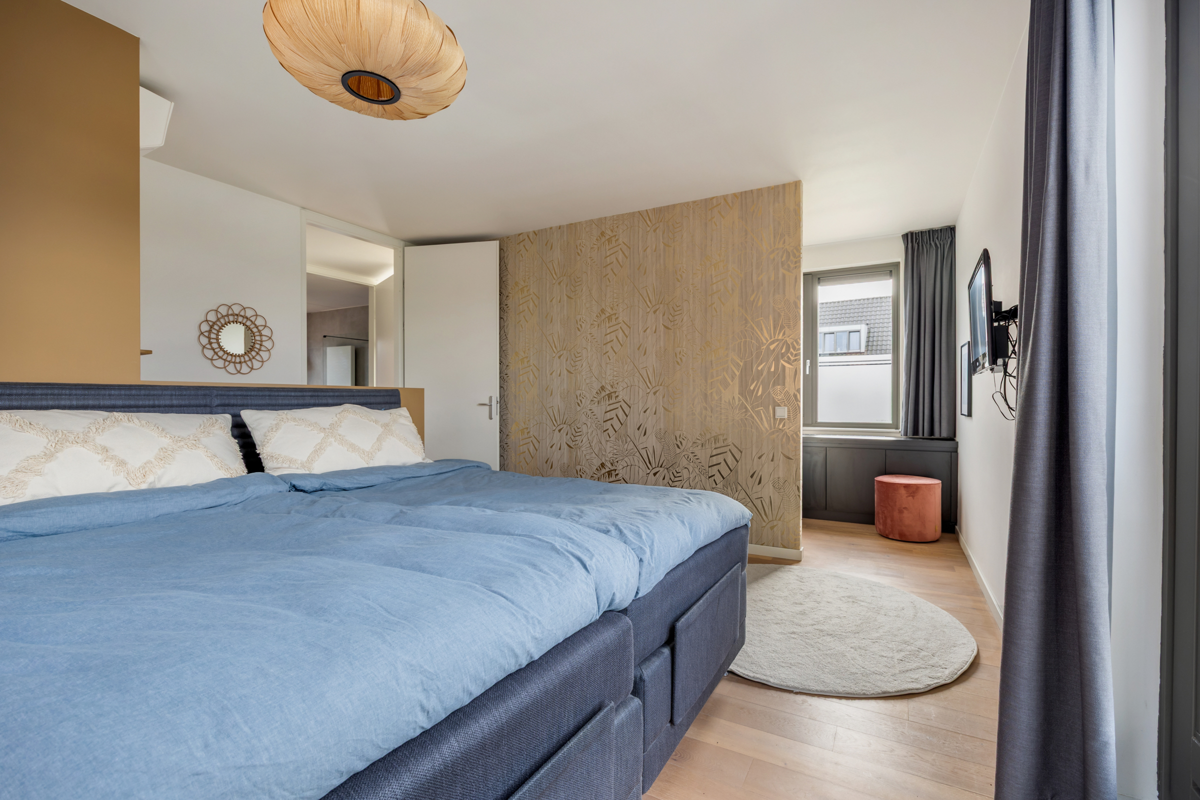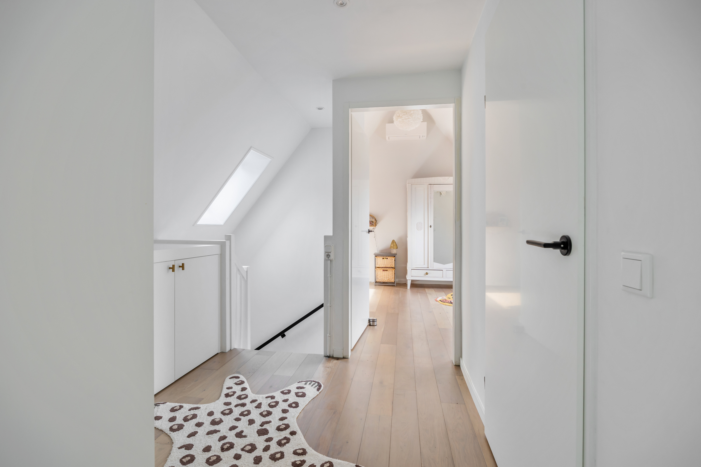 De vierde slaapkamer, gelegen aan de achterzijde, heeft dezelfde hoogwaardige afwerking als slaapkamer III, is eveneens uitgerust met airconditioning en beschikt bovendien over een open bergvliering uitsluitend geschikt voor praktische opslag (bijvoorbeeld koffers, seizoensspullen, archief).. De volledige tweede verdieping is in 2022 volledig ingericht en gemoderniseerd tot de huidige, praktische en stijlvolle indeling.